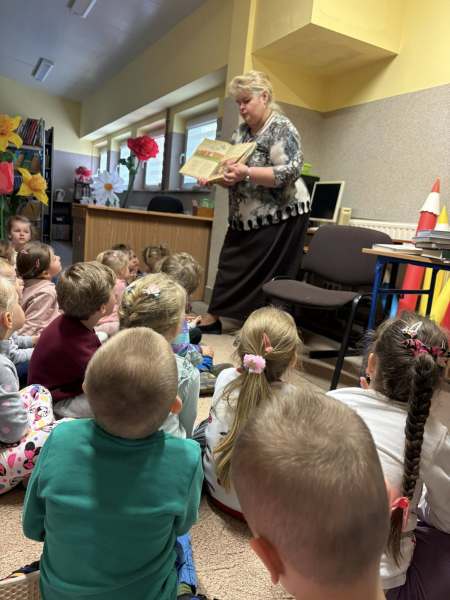 Grupy Biedronki i Pszczółki odwiedziły bibliotekę szkolną, gdzie czekało na nie wiele ciekawych atrakcji. Pani Ania, bibliotekarka, opowiedziała dzieciom o książkach i wyjaśniła, jak należy z nich korzystać. Uczniowie mieli okazję zobaczyć, jak wygląda biblioteka oraz jakie skarby kryją się na jej półkach. Z dużym zainteresowaniem oglądali książki i słuchali opowieści. Wizyta była nie tylko ciekawą przygodą, ale także zachętą do częstszego sięgania po książki.