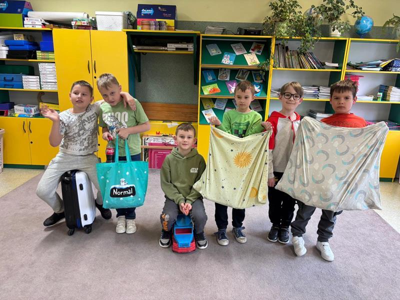 Czwartek upłynął pod hasłem „Dzień bez plecaka”. Uczniowie po raz kolejny pokazali swoją pomysłowość i zamiast tradycyjnych plecaków przynieśli książki oraz przybory szkolne w naprawdę nietypowych „bagażach”. Pojawiły się walizki, koszyki, garnki, skrzynki, opony, szuflady, taczki, a nawet wózki i rowery. Kreatywność naszych uczniów nie miała granic!