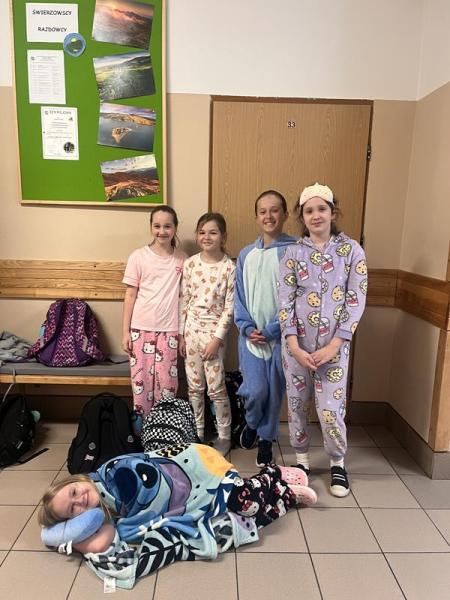 Na zakończenie tygodnia, w piątek, wszyscy mogli poczuć się naprawdę swobodnie podczas „Dnia w piżamie”. Kolorowe piżamy, szlafroki i ulubione poduszki sprawiły, że szkoła zamieniła się na chwilę w bardzo przytulne miejsce. Było ciepło, zabawnie i wyjątkowo komfortowo.