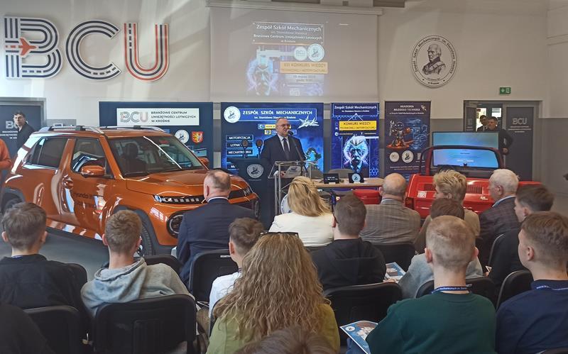19 marca 2026 r. w Zespole Szkół Mechanicznych w Krośnie odbył się finał XIII edycji Konkursu Wiedzy Technicznej i Motoryzacyjnej. Konkurs jest objęty patronatem Podkarpackiego Kuratora Oświaty oraz Prezydenta Miasta Krosna. W finale brało udział 96 uczniów z 32 szkół podstawowych województwa podkarpackiego. Naszą szkołę godnie reprezentowało trzech uczniów: Paweł Drozd, Szymon Leśniak i Bartosz Wilusz.