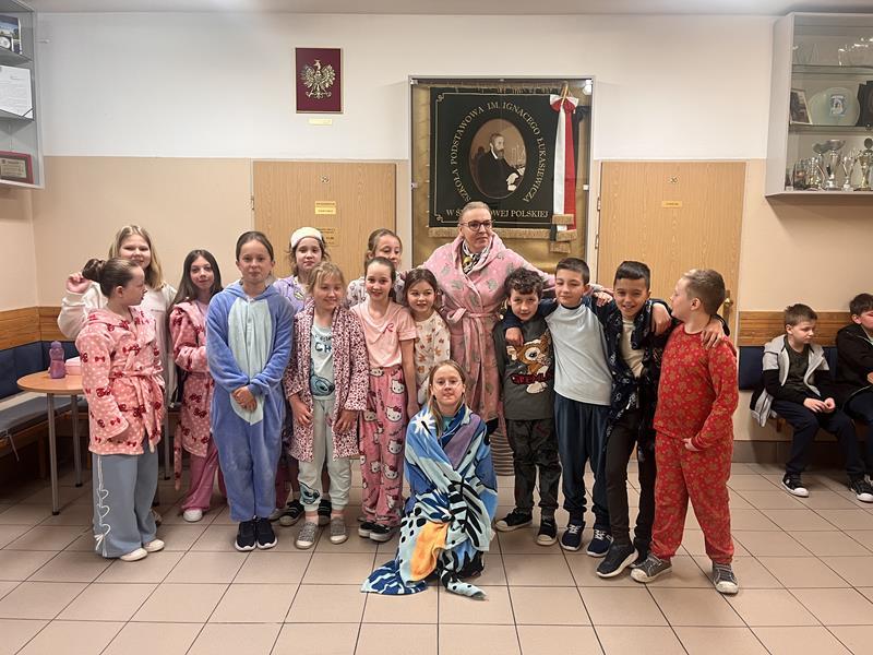 Na zakończenie tygodnia, w piątek, wszyscy mogli poczuć się naprawdę swobodnie podczas „Dnia w piżamie”. Kolorowe piżamy, szlafroki i ulubione poduszki sprawiły, że szkoła zamieniła się na chwilę w bardzo przytulne miejsce. Było ciepło, zabawnie i wyjątkowo komfortowo.
